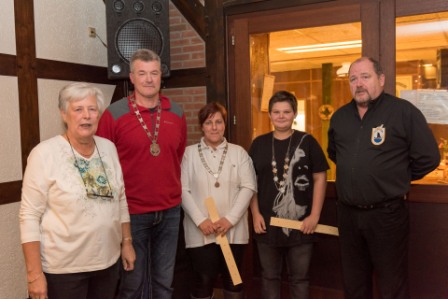 von links Brigitte Jannusch, Kreispräsidentin, Kreiskönig Rainer Wilking, Scharmbeckstotel, Kreiskönigin Daniela Schieferdecker, Ritterhude, Kreisjugendkönig Julian Glüschke, Schwanewede, Kreissportleiter Wolfgang Kallen